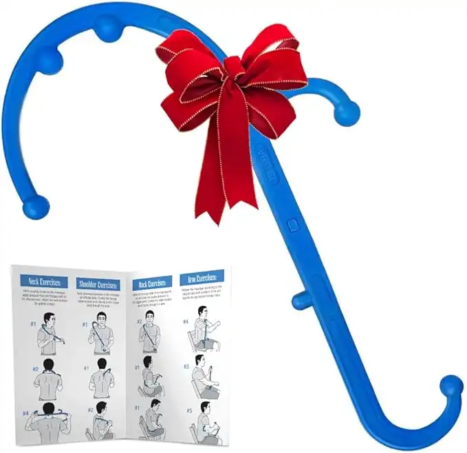LiBa Back and Neck Massager - Trigger Point Massage Tools for Pain Relief and Manual Massage Hook Therapy Handheld Back Neck Shoulder Massager Blue - Gift for Women & Men
