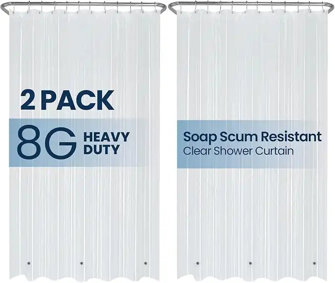 LiBa Waterproof Plastic Shower Curtain - Bathroom Shower Curtain Premium PEVA Non-Toxic with Rust Proof Grommets Frosted 8G Heavy Clear Duty Bathroom Accessories 72x72 2 Pack