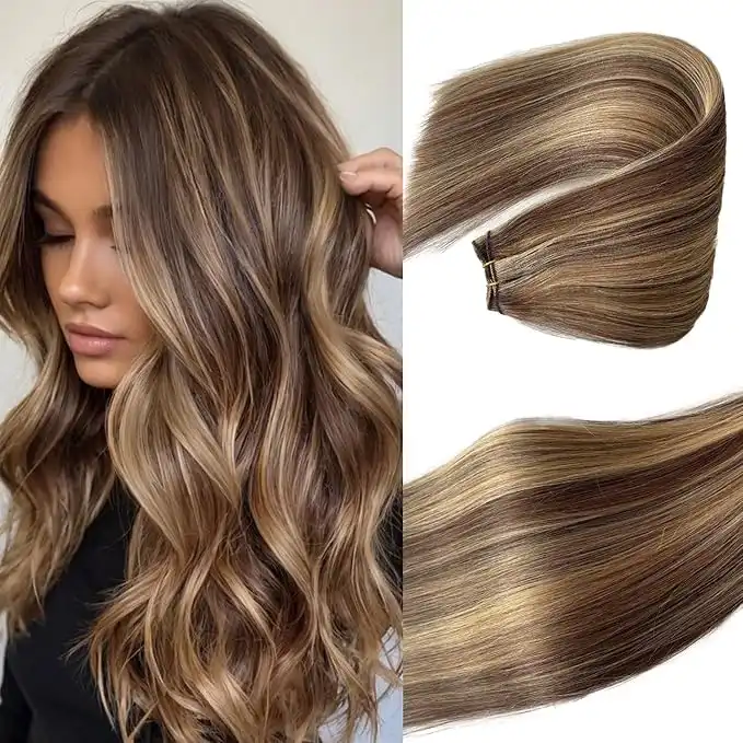 Licoville Weft Hair Extensions Real Human Hair Sew in Blonde Highlights Human Hair Wefts Hand Tied Remy Hair Bundles Brown and Blonde Sew in Extensions 16 Inch 100G — Price History & Tracker | DeserTracker