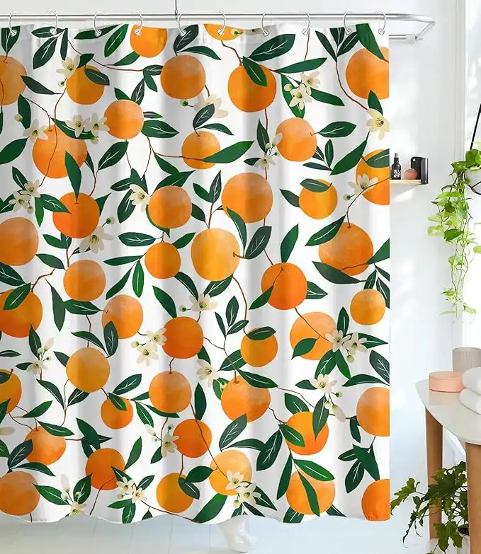 Lifeel Orange Shower Curtain, Allover Fruits Round Citru Pattern Design Waterproof Fabric Bathroom Curtains Set with 12 Hooks, Orange Green 72×72 inch — Price History & Tracker | DeserTracker