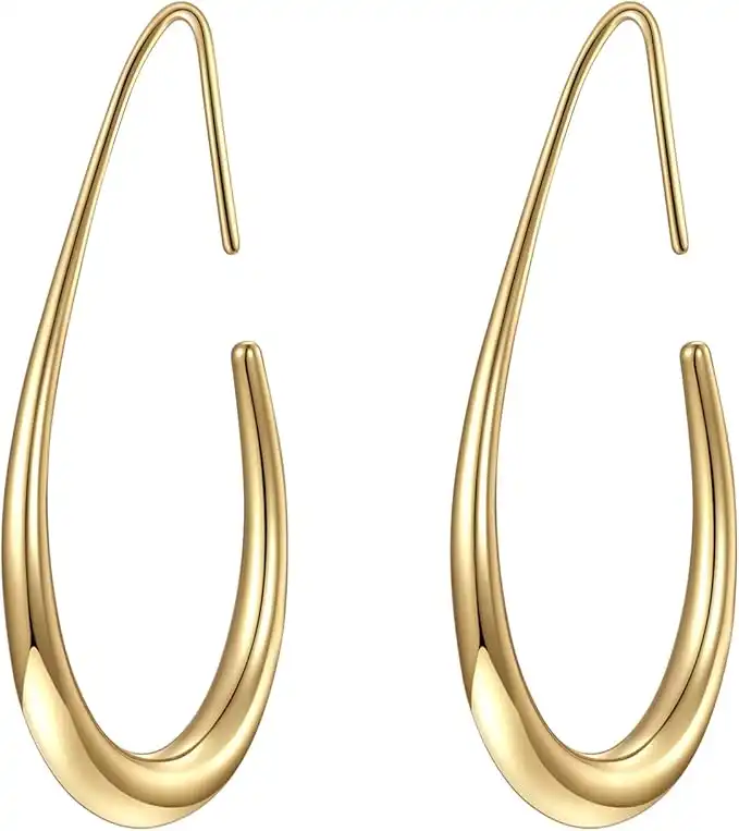 Lightweight Teardrop Hoop Earrings for Women - 14k Gold/White Gold Plated Large Oval Pull Through Hoop Earrings High Polished Statement Jewelry Gift for Women Teen Girls — Price History & Tracker | DeserTracker