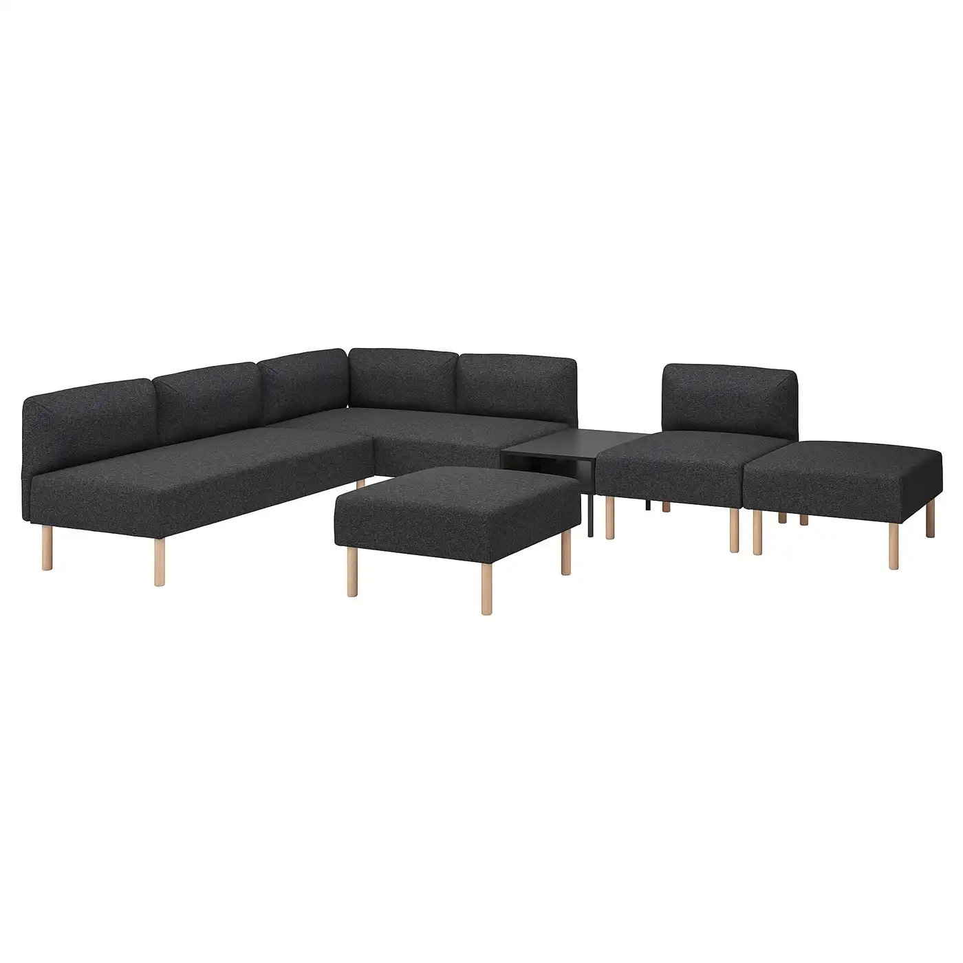 LILLEHEM 6-seat modular sofa with side table - Gunnared/dark grey wood