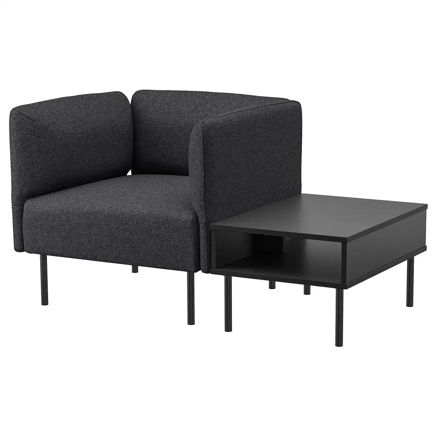 LILLEHEM Armchair with side table - Gunnared dark grey/metal
