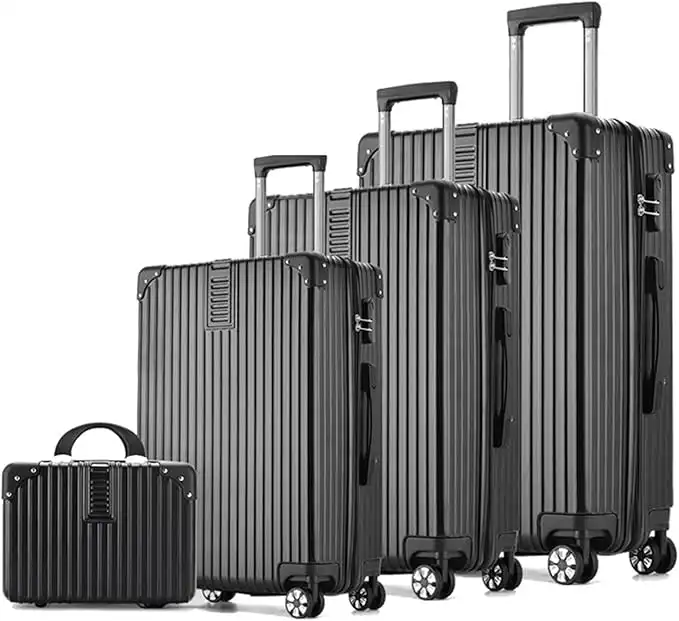 LIODUX 4 Piece Luggage Sets, Expandable PC Hardshell Travel Suitcase Set, 14/20/24/28in Hardside Lightweight Luggage, Carry On Suitcase Sets with Two Hooks & Spinner Wheels (Black)