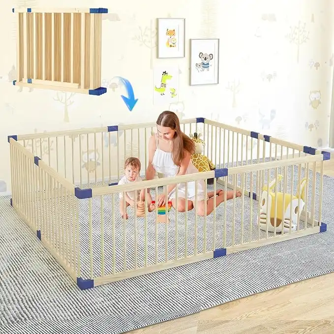 LIODUX Wooden Baby Playpen Kids Fence with Safety Gate, Safety and Anti-Drop Function, Activity Play Center, Safety Play Yard Indoor Outdoor Pure Wooden Baby Playpen (180 * 200cm)