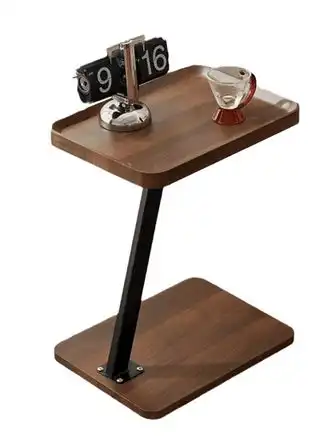 Living Room Sofa Side Table Z-Shaped Coffee Table Walnut Color Steel Frame Side Table 40*30*55CM