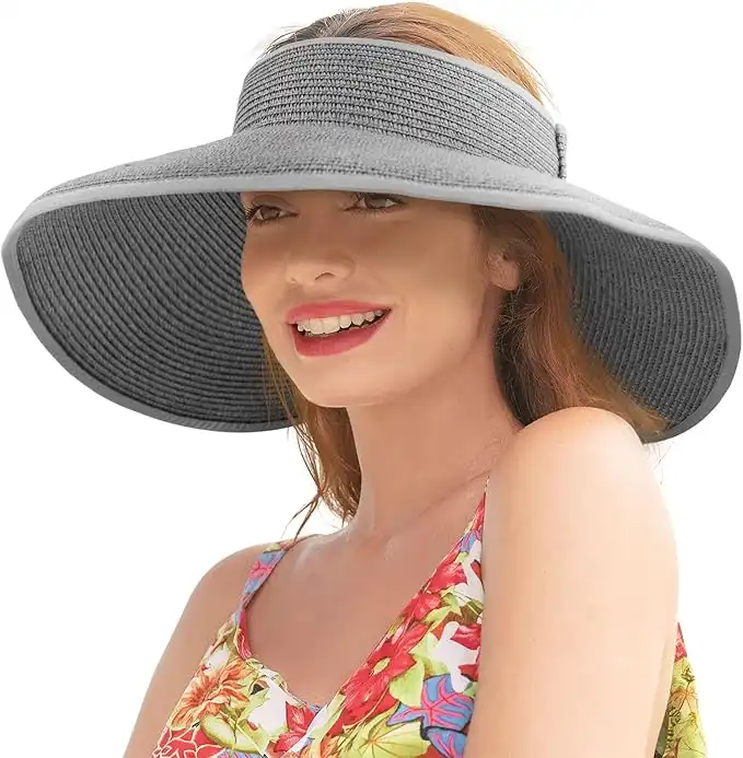 Livingston Sun Visors for Women Wide Brim Straw Hat Women Beach Visor Hats for Women Uv Protection Foldable Sun Hat Women Beach Hat, Grey, One size — Price History & Tracker | DeserTracker