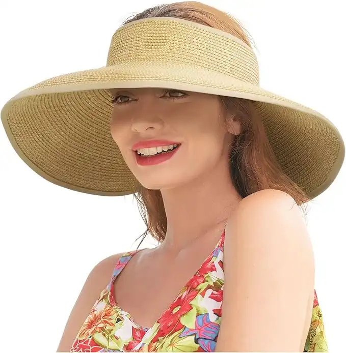 Livingston Women Beach Sun Hat Beach Accessories Roll Up Wide Brim Sun Visor Hat for Women Wide Brim Visor for Women Sun Proetction Straw Visor Hat, Mix Brown, Mix Brown, One size — Price History & Tracker | DeserTracker