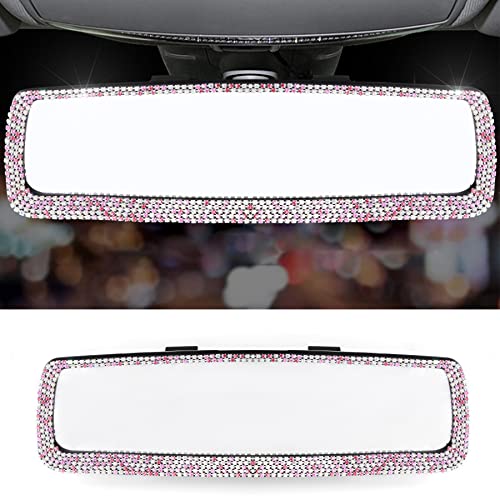 LivTee Bling Car Mirror Accessories, Bling Rhinestone Car Rear View Mirror, Crystal Diamond Rear View Mirror Cover for Women and Men - Pink