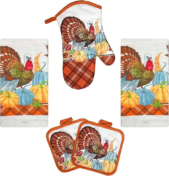 Lobyn Value Packs Oven Mitts and Pot Holders - Kitchen Towels and Dish Cloths Sets - Oven Mitts - Tea Towels - Dish Cloths Set (Turkey)