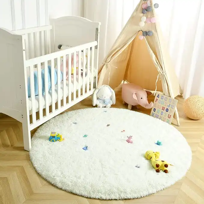 LOCHAS Luxury Round Fluffy Area Rugs for Bedroom Kids Girls Room Nursery, Super Soft Circle Rug, Cute Shaggy Carpet for Children Living Room, 4x4 Feet Cream — Price History & Tracker | DeserTracker