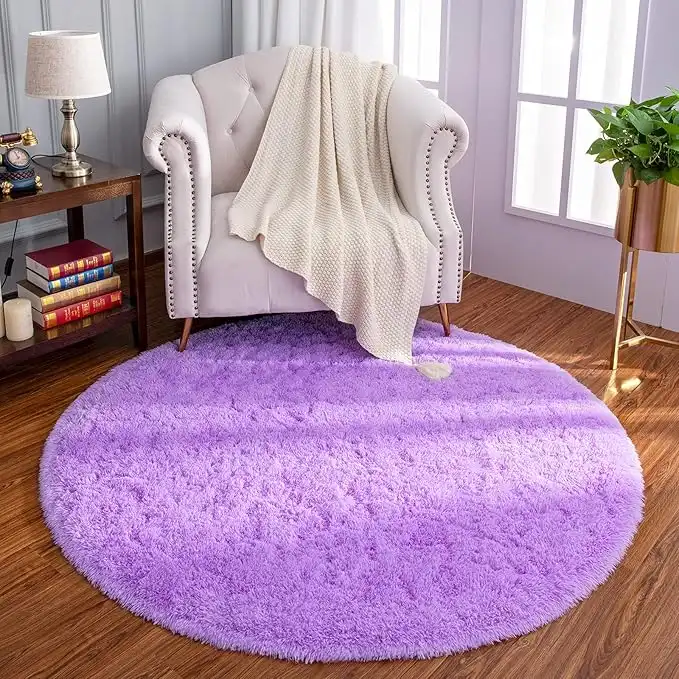 amazon.aeLOCHAS Luxury Round Fluffy Area Rugs for Bedroom Kids Girls Room Nursery, Super Soft Circle Rug, Cute Shaggy Carpet for Children Living Room, 4x4 Feet Purple