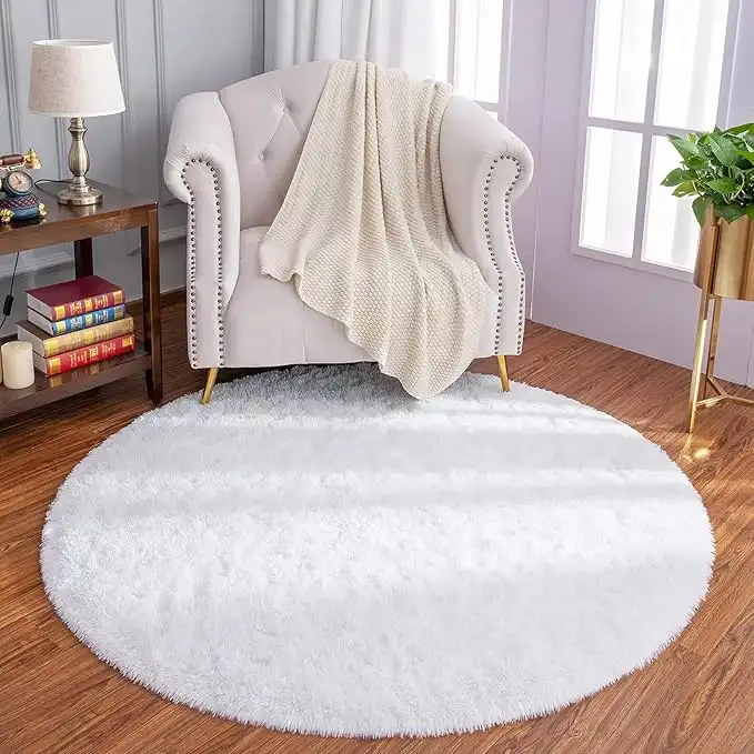 LOCHAS Luxury Round Fluffy Area Rugs for Bedroom Kids Girls Room Nursery, Super Soft Circle Rug, Cute Shaggy Carpet for Children Living Room, 4x4 Feet White