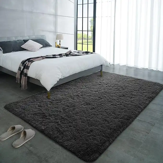 LOCHAS Ultra Soft Indoor Modern Area Rugs Fluffy Living Room Carpets for Children Bedroom Home Decor Nursery Rug 5.3x7.5 Feet, Dark Grey