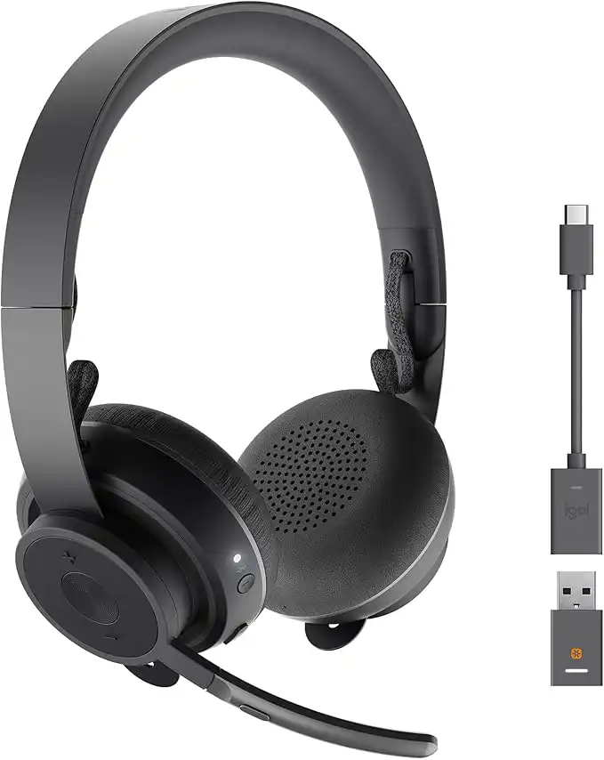 Logitech Zone 900 Over Ear Wireless Bluetooth Headset with advanced noise cancelling microphone, connect up to 6 wireless devices with one receiver, quick access to ANC and Bluetooth Grey with Black
