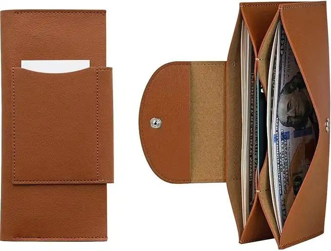 amazon.aeLong Bifold Wallet, All-in-One Large Capacity 2-Tier PU Leather Money Organizer for Travel & Budgeting, Cash Envelope System, Multi-Card Holder for Cash, Credit & Business Cards - Classic Brown