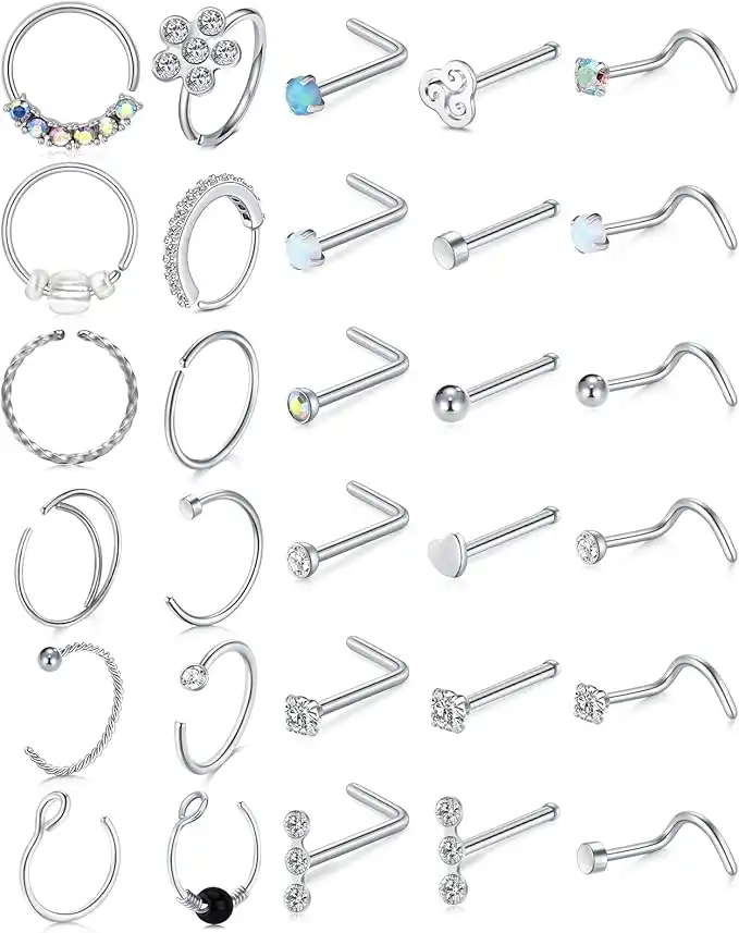 amazon.aeLongita 20g Nose Rings Studs Surgical Steel Nose Rings Hoop L Shape Nose Studs Screw Stainless Steel Diamond Nostril Nose Piercings Jewelry for Men Women Nose Hoop 6mm 8mm 10mm 12mm Silver Rose Gold