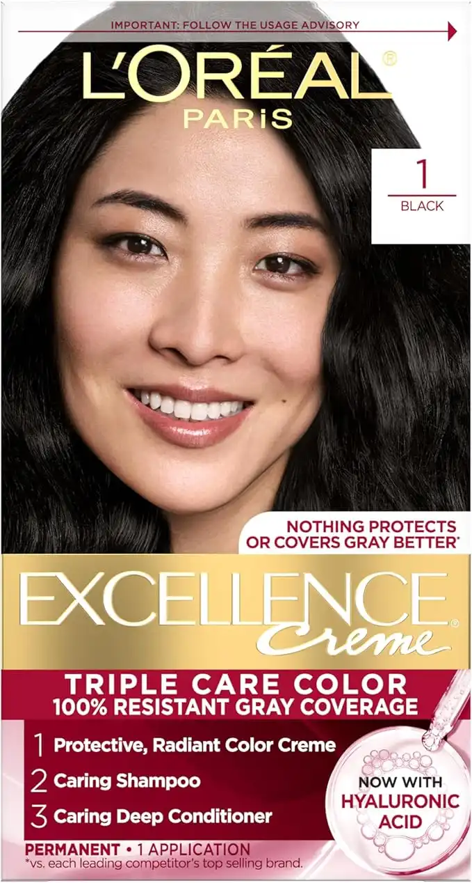 L’Oréal Paris L'Oreal Excellence Creme Permanent Triple Care Hair Color, 1 Black, Gray Coverage For Up to 8 Weeks, All Hair Types, Pack of 1