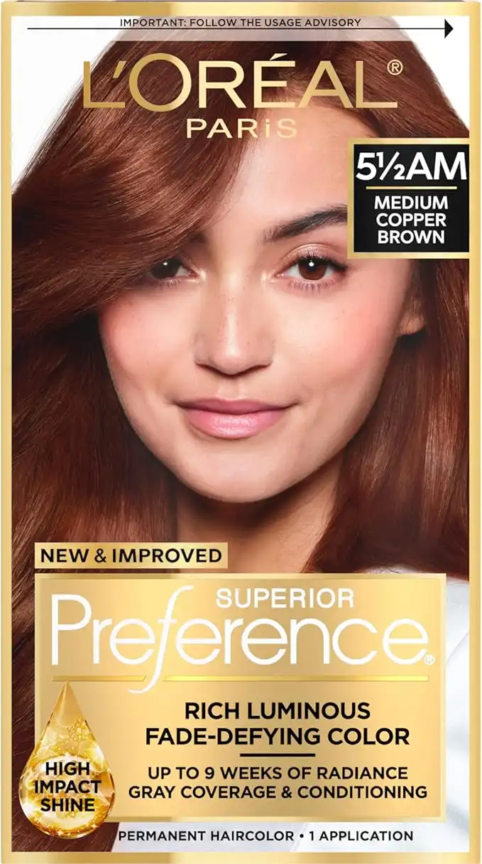amazon.aeL’Oréal Paris L'Oréal Paris Superior Preference Fade-Defying + Shine Permanent Hair Color, 5.5AM Medium Copper Brown (1 Kit) Hair Dye