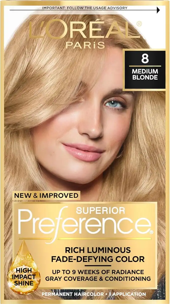 amazon.aeL’Oréal Paris Superior Preference Fade-Defying + Shine Permanent Hair Color, 8G Golden Blonde, Pack of 1, Hair Dye