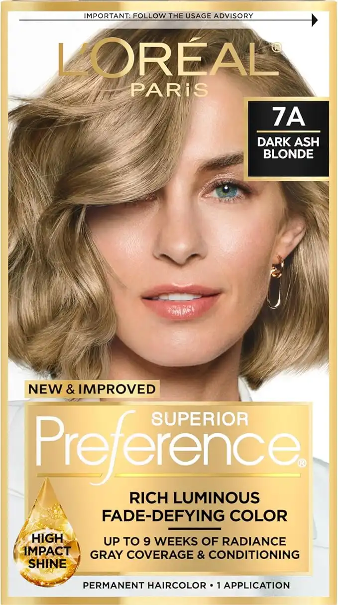 amazon.aeL’Oréal Paris Superior Preference Fade-Defying Color 7A Dark Ash Blonde - Cooler for Unisex - 1 Application