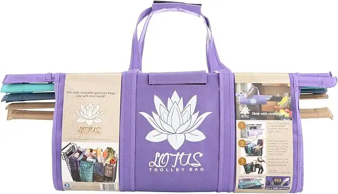 Lotus Trolley Bags -set of 4 -w/LRG COOLER Bag & Egg/Wine holder! Reusable Grocery Cart Bags sized for USA. — Price History & Tracker | DeserTracker