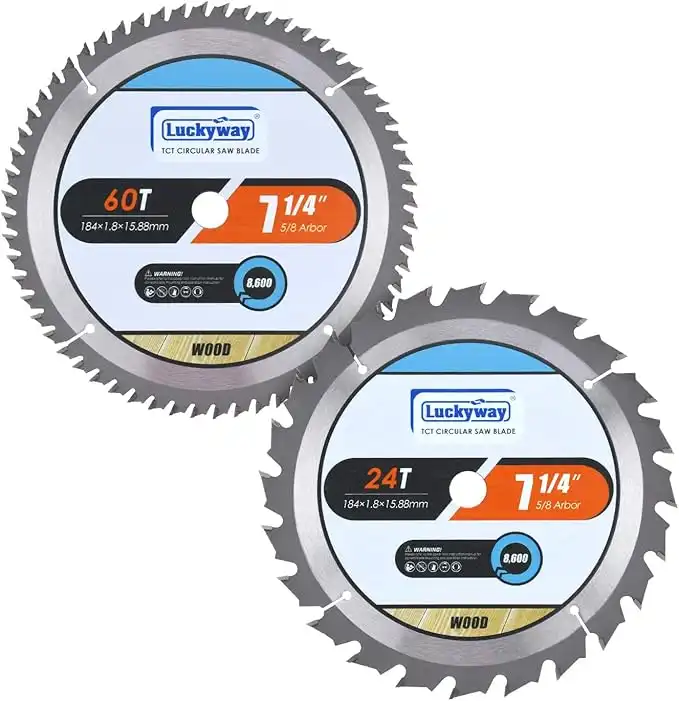 Luckyway 7-1/4 Inch Circular Saw Blade 24T Framing & 60T Fine Finish with 5/8 Inch Arbor, TCT (Tungsten Carbide Tipped) Saw Blade for Wood Cutting 2-Pack — Price History & Tracker | DeserTracker