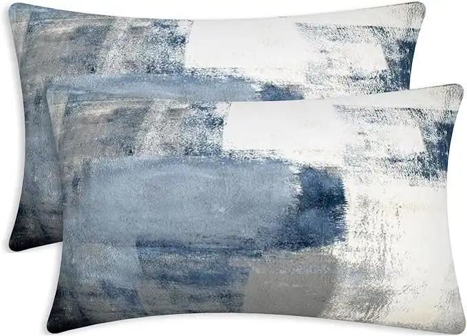 Lumbar Throw Pillow Covers,Pack of 2 Soft Velvet Decorative Cushion Cover for Sofa Bedroom Car (12X20 inch, Blue and Grey) — Price History & Tracker | DeserTracker
