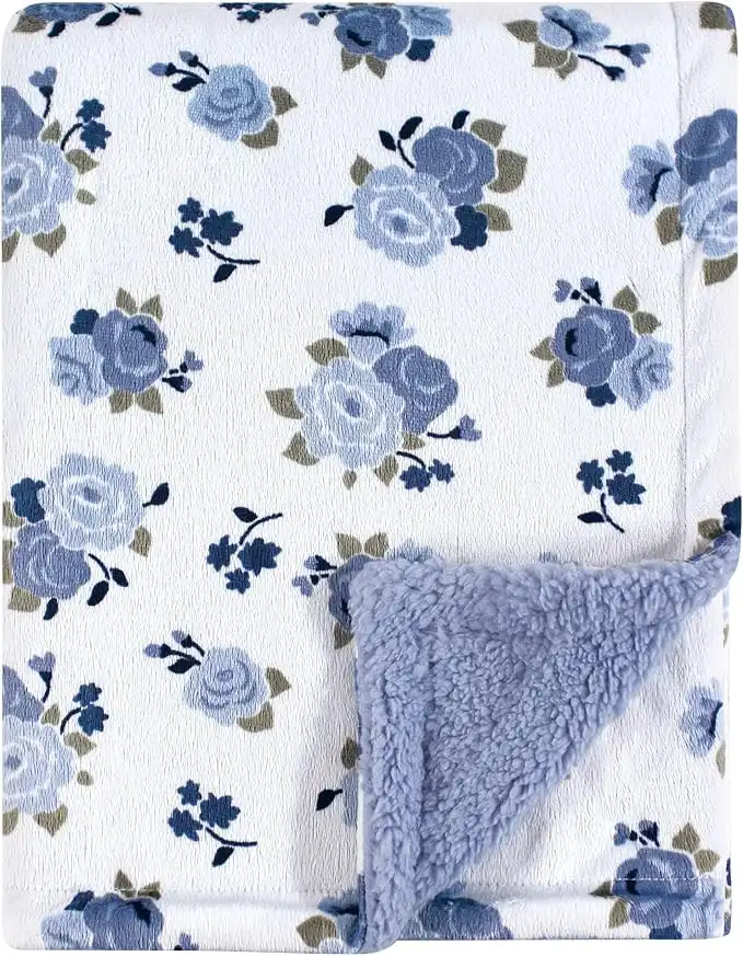Luvable Friends Unisex Baby Plush Blanket with Sherpa Back, Blue Floral, One Size — Price History & Tracker | DeserTracker
