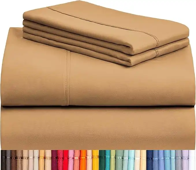LuxClub 6 PC California King Sheet Set, Rayon Made from Bamboo Bed Sheets, Deep Pockets 18" Wrinkle Free Cooling Sheets Machine Washable Hotel Bedding Silky Soft - Gold Cal King