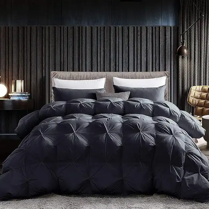 Luxurious Goose Down Feather Fiber Comforter Duvet Insert, Exquisite Pinch Pleat Black Design, Oversize Palatial King 120 x 98, Premium Baffle Box 100% Egyptian Cotton, 90 oz Fill Weight — Price History & Tracker | DeserTracker