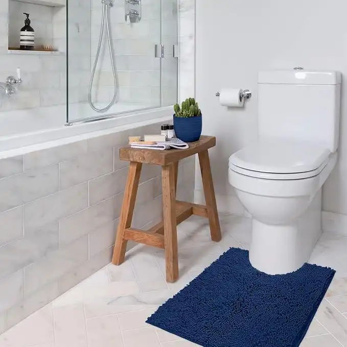 LuxUrux Bath Mat Extra Soft Plush Bath Shower Bathroom Rug 1 Chenille Microfiber Material Super Absorbent Shaggy Bath Rug Machine Wash & Dry 20 x 23 Blue