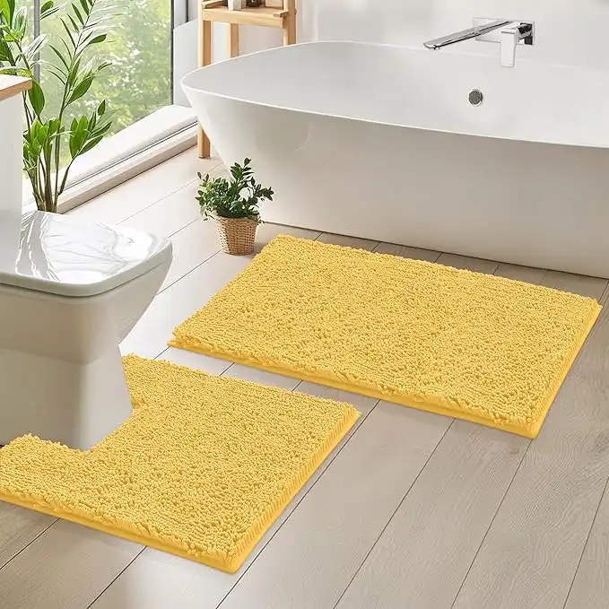 LuxUrux Yellow Bathroom Rug Set Chenille 2-Piece Bath Mat Set, Soft Plush Bath Rug +Toilet Mat.1'' Microfiber Shaggy Carpet, Super Absorbent Machine Washable (Curved Set Square, Yellow) — Price History & Tracker | DeserTracker