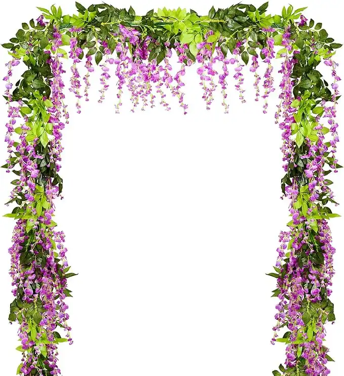 amazon.aeLvydec Wisteria Artificial Flowers Garland, 4 Pcs Total 28.8ft Artificial Wisteria Vine Silk Hanging Flower for Home Garden Outdoor Ceremony Wedding Arch Floral Decor (Purplish Red)