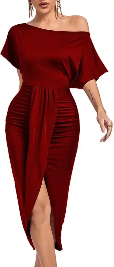 LYANER Women's One Off Shoulder Ruched Wrap Front Split Hem Draped Party Midi Dress — Price History & Tracker | DeserTracker