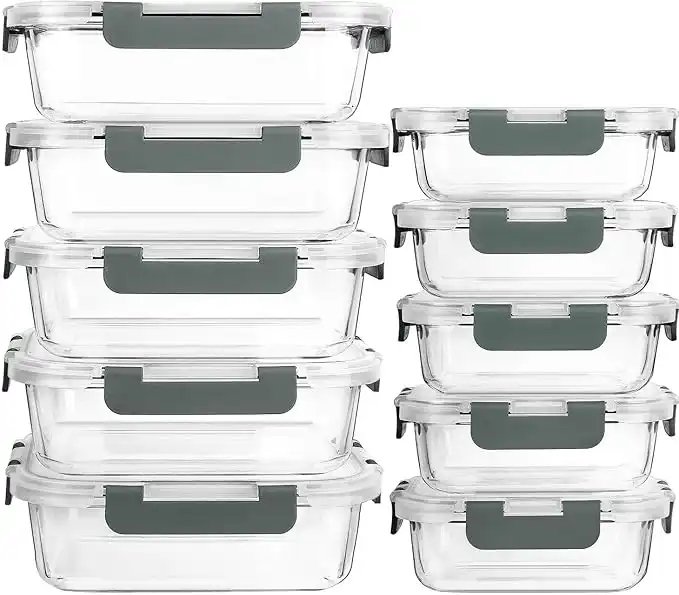 M MCIRCO [10-Pack] Glass Meal Prep Containers with Lids-MCIRCO Food Storage Containers with Snap Locking Lids, Airtight Lunch Containers, Microwave, Oven, Freezer and Dishwasher