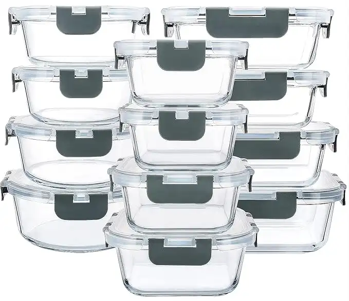 M MCIRCO 24-Piece Glass Food Storage Containers with Upgraded Snap Locking Lids,Glass Meal Prep Containers Set - Airtight Lunch Containers, Microwave, Oven, Freezer and Dishwasher