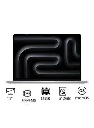 MacBook Pro MDE44 | 14 Inch Display | Apple M5 Chip | 10-Core CPU And 10-Core GPU | 16GB RAM | 512GB SSD | macOS | English Keyboard | International Version | English Silver