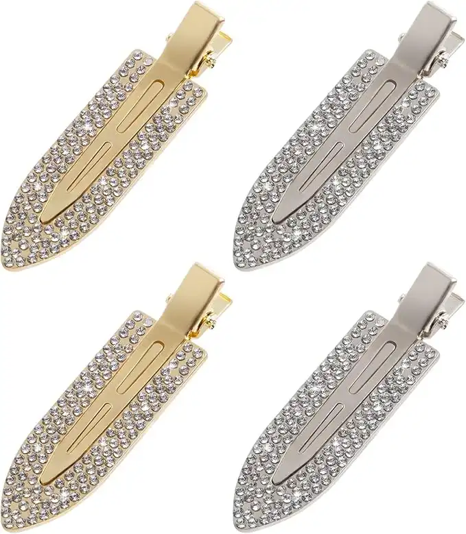 amazon.aeMADHOLLY 4pcs Rhinestone No Bend Hair Clips- Metal Shiny Styling Diamond Cut Pin Clip No Dent No Crease Hair Clips Bling Curl Pin Barrette for Women Girls Makeup Hairstyle Application (Silvery& Gold)