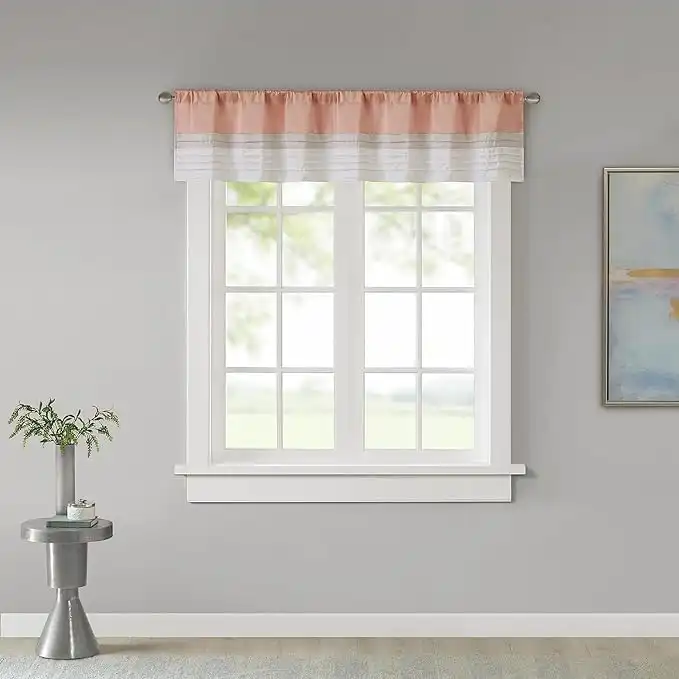 amazon.aeMadison Park Rod Pocket Valance Window Curtains For Bedroom,Transitional Modern Light Bedroom Curtains, Pieced Amherst Curtain Panels For Living Room Family Room Curtains, 50"" x 18", 1-Panel Pack