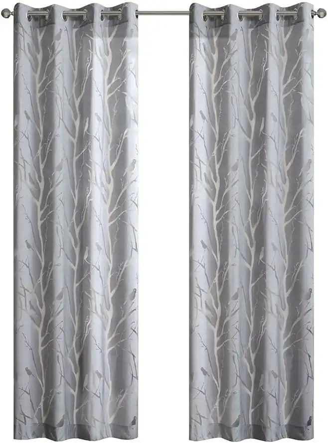 Madison Park Semi Sheer Curtain Modern Contemporary Botanical Print Out Design, Grommet Top, Single Window Drape for Living Room, Bedroom and Dorm, 50x95", Bird Grey — Price History & Tracker | DeserTracker