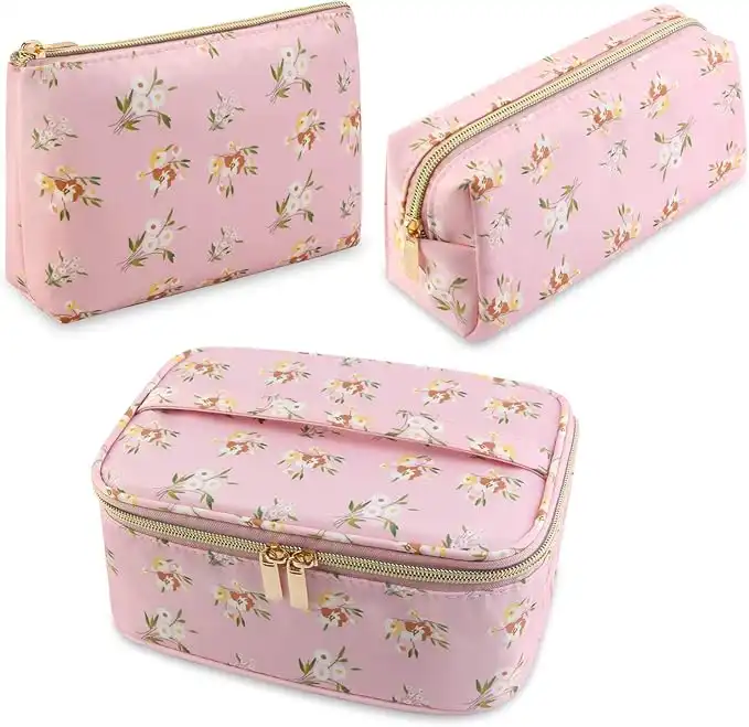 MAGEFY 3Pcs Makeup Bags Portable Travel Cosmetic Bag Waterproof Organizer for Purse with Gold Zipper Cute Toiletry Bags for Women (Flower Pink) — Price History & Tracker | DeserTracker