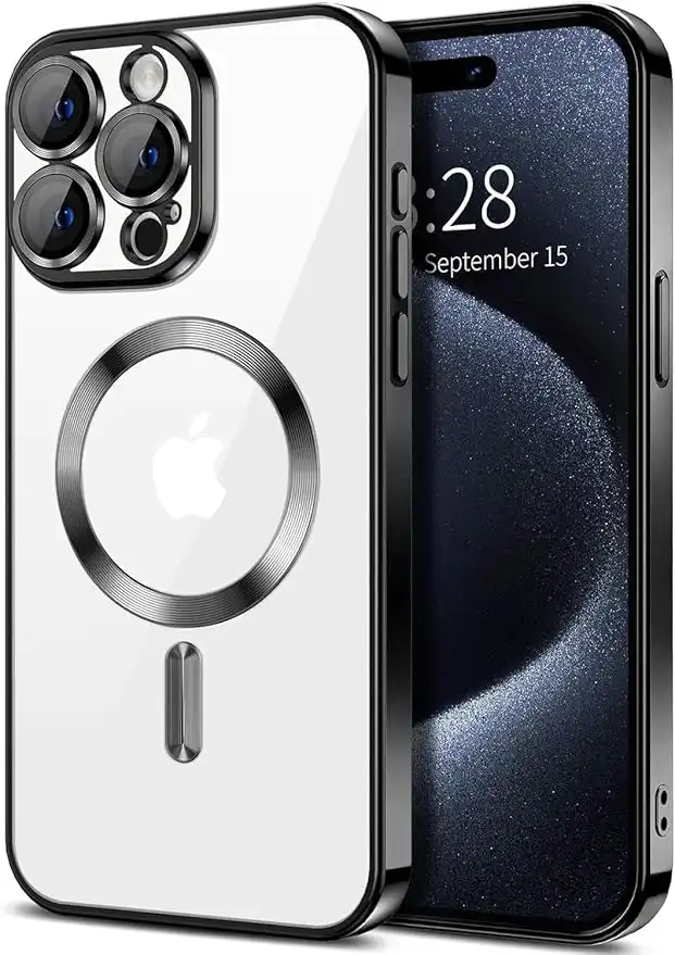Magnetic Case for iPhone 15 Pro, Compatible with Mag-Safe Camera Lens Protector Slim Luxury Plating Soft TPU iPhone 15 Pro Cover Shockproof Protective Phone Case 6.1” (Black)