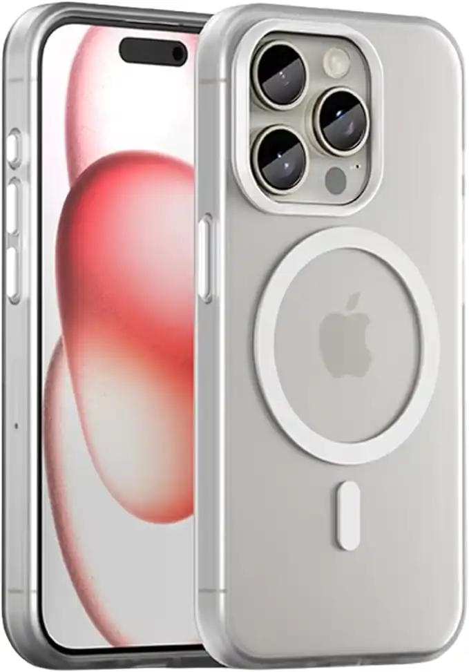 Magnetic Clear Case for iPhone 15 Pro Max compatible with Magsafe Raised Edges, Military Grade Shockproof Anti-Scratch Anti-yellowing Non-Slip slim cover (White)