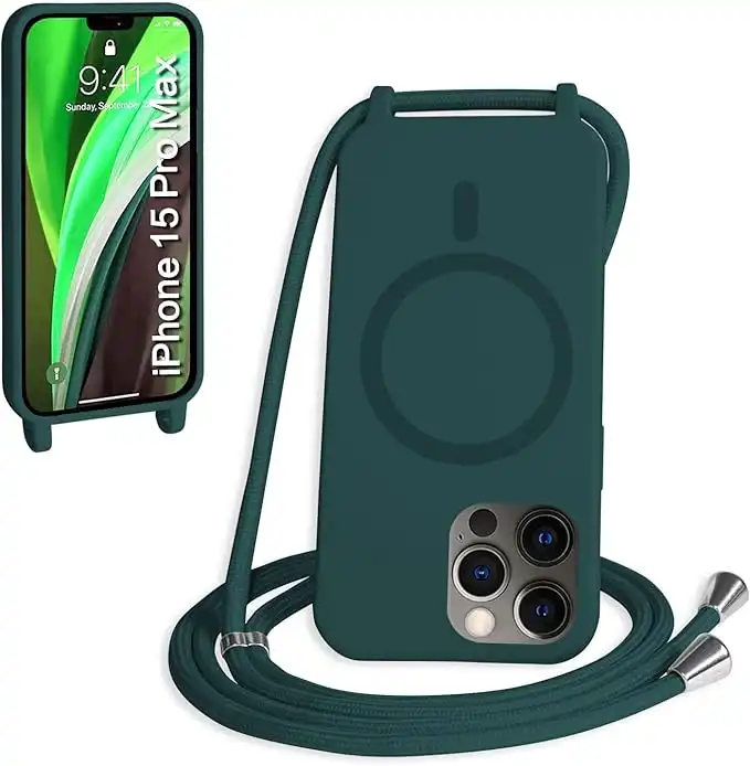 Magnetic Crossbody Case Compatible with iPhone 15 Pro Max Support Magsafe,Wireless Charging Shell with Adjustable Neck Cord Lanyard Strap,Green — Price History & Tracker | DeserTracker