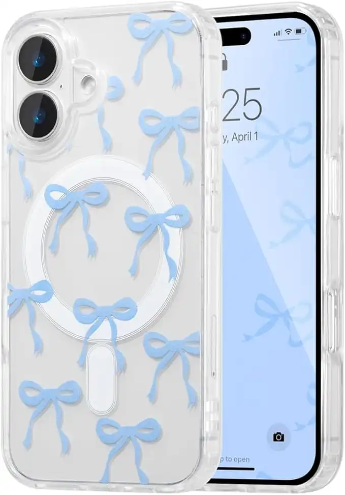 Magnetic for iPhone 16 Plus Case, Bow Case Compatible with MagSafe, Wireless Slim Clear Ribbon Aesthetic Phone Cover Shockproof Protective Phone Cover for Women Girl (Blue, 16 Plus) — Price History & Tracker | DeserTracker
