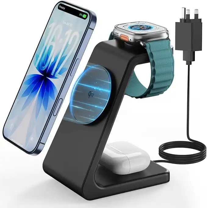 amazon.aeMagsafe Wireless Charging Station for iPhone: 3 in 1 15W Magnetic Portable Desktop Charging Station Qi2 Certified Charger Stand for iPhone17/16/15/14/13/12 Series, Apple Watch, AirPods 4/3/Pro