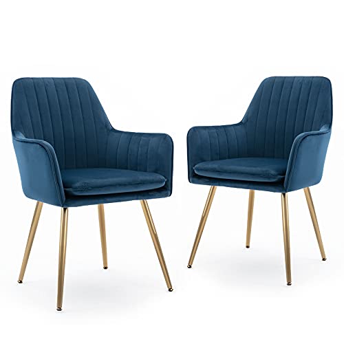 amazon.aeMahmayi Five Stars Furniture Elegant Velvet Dining Chair with Golden Metal Legs - Superior Fabric, Removable Washable Cushion, Sturdy Structure, 220lbs Weight Capacity (Blue) Set of 2