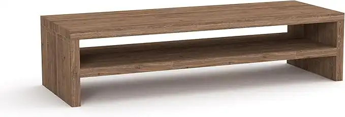 Mahmayi Wooden Riser Monitor Stand with 2 Tier Storage Shelf, Monitor Stand for Home Office, PC Desk Stand Monitor Riser for Keyboard Storage, Laptop, Printer - Truffle Davos Oak