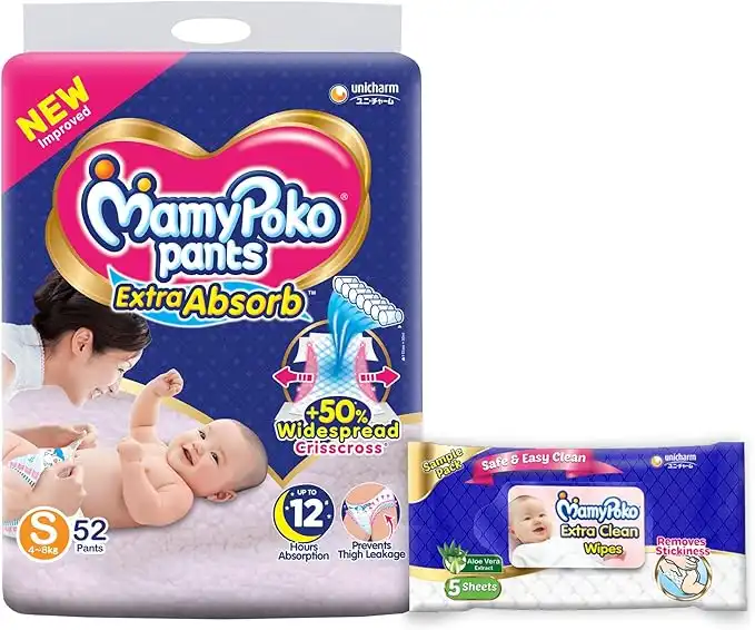 MamyPoko Pants Extra Absorb Diaper - Small Size, Pack of 52 Diapers (S-52)